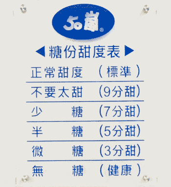 不過邏輯更破洞的是 50 嵐的甜度表。如果九分糖的代名詞是「不要太甜」,那不就暗示著十分糖實際上就是「太甜」了嗎?那它就不該叫做「正常甜度」,而應該改叫「太甜了吧」呀!