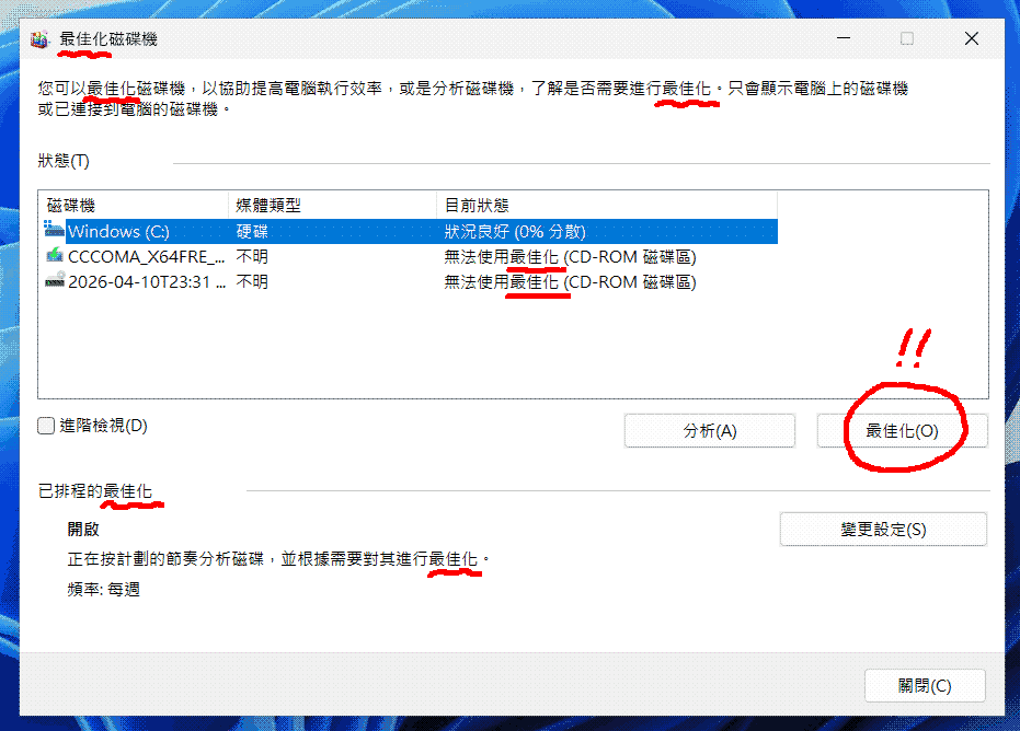 (Windows 11 想要最佳化你的磁碟,而不是優化它!)