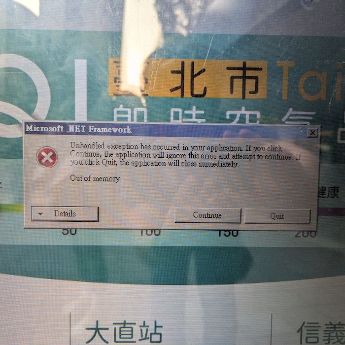 路邊的空氣品質顯示器,一個只需要顯示幾個數字的機器,跑著 Windows 作業系統,然後記憶體不足當機。