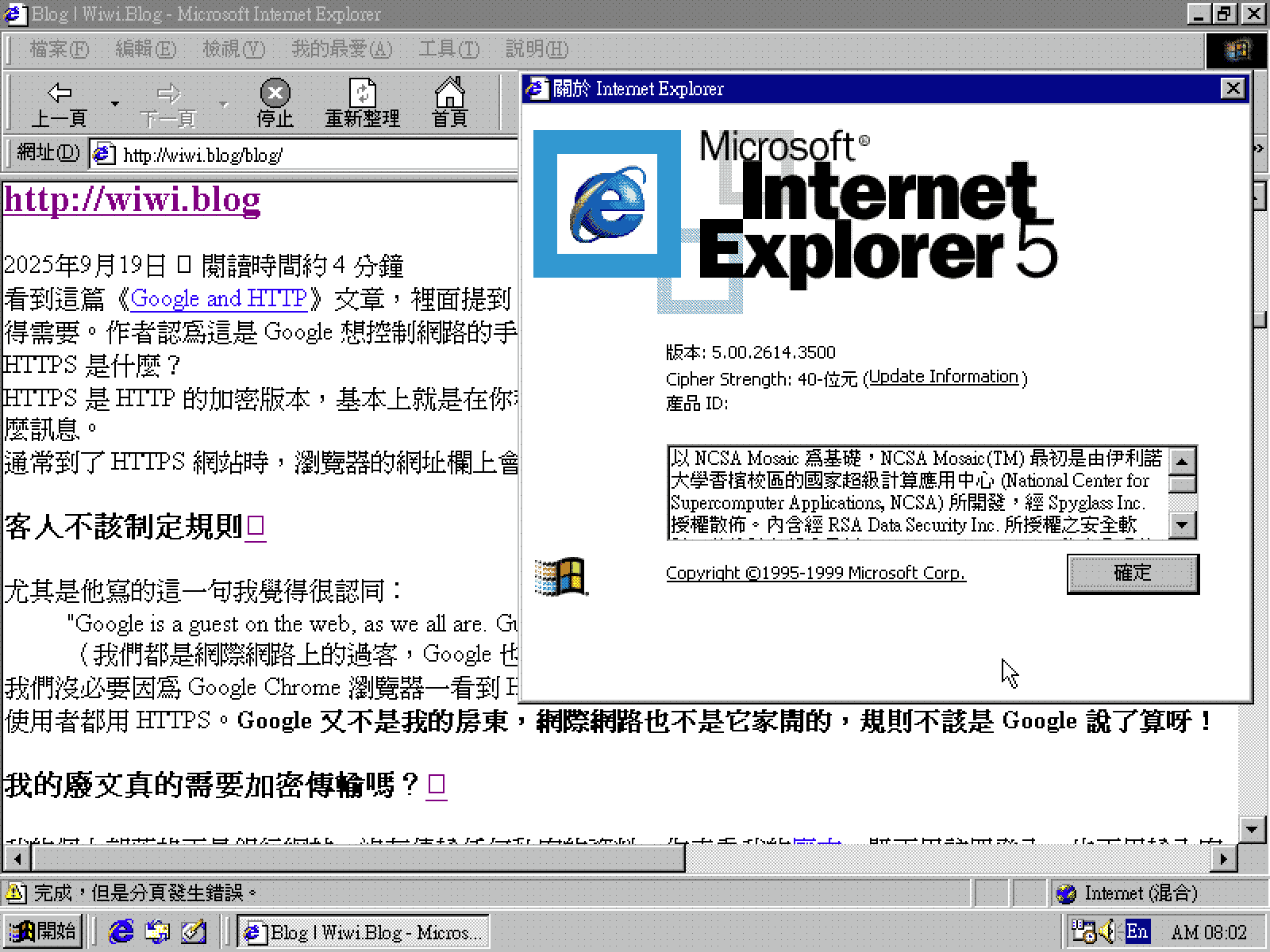 (多虧 HTTP,現在連 Windows 98 + IE5 都可以看 Wiwi.Blog 了!)