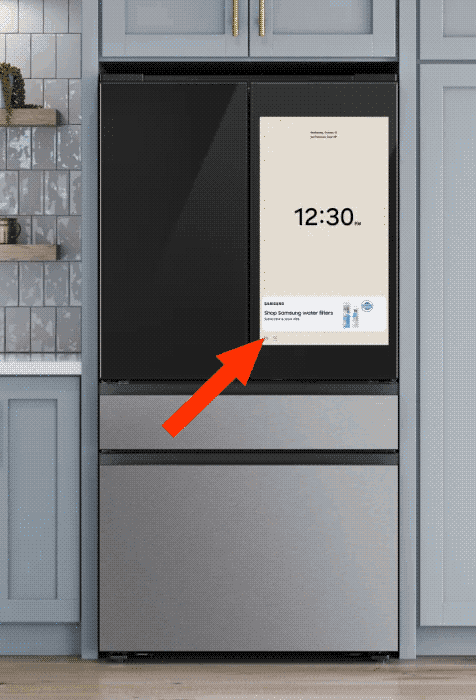 根據 The Verge 的報導1,從 11 月 3 號開始,在美國那些售價超過 2,000 美元的 Samsung Family Hub 智慧冰箱,將會透過軟體更新得到一個「驚喜」——螢幕底部會出現一個新的「小工具」,包含四個輪播畫面:新聞、行事曆、天氣和……廣告。每 10 秒會輪播一次,讓你在拿啤酒的時候,可以順便欣賞 Samsung 水濾芯的廣告!